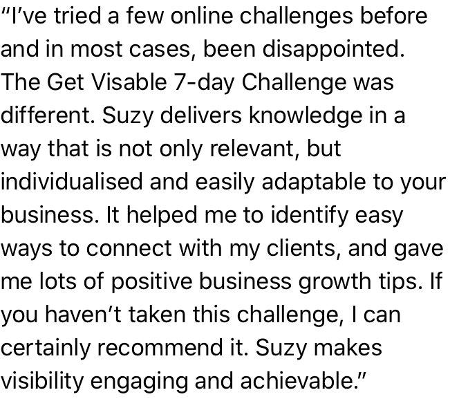 In this totally FREE challenge, I'll be sharing the fundamentals of building a successful visibility strategy geared for creating raving fans and customers!